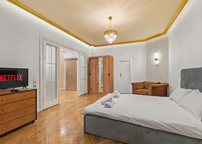 - ❓Quais são os bons restaurantes não muito longe de Golden Crown apartamento?Os hóspedes podem optar por jantar em Trattoria Adagio, a pizzaria que oferece pratos de cozinha Europese dentro de 200 metros de Golden Crown apartamento. Alternativamente, eles podem saborear pratos de cozinha Europese em Ceainaria Bohemia Tea House, convenientemente situado a 50 metros de distância.